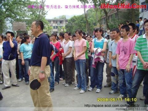 TSP1963老师是物理教师,真名唐国平,第二张照片上的人就是他。Blog的最后登录日期是2008年5月12日。根据网友的通报,唐老师幸免于难。看着照片上一张张年轻的笑脸,我一直在想:要是推后一天搞活动该有多好啊。 北川中学高三师生活动“调整心态”奋力拼搏 为了更好的调整高三学生的心态好身体状况,北川中学高三年级组在2008年5月11日下午组织了一次别开生面的师生活动,全部高三学生和老师参加了一场以体育锻炼和娱乐为一体的活动,让学生消除疲劳,努力奋斗,调整心态